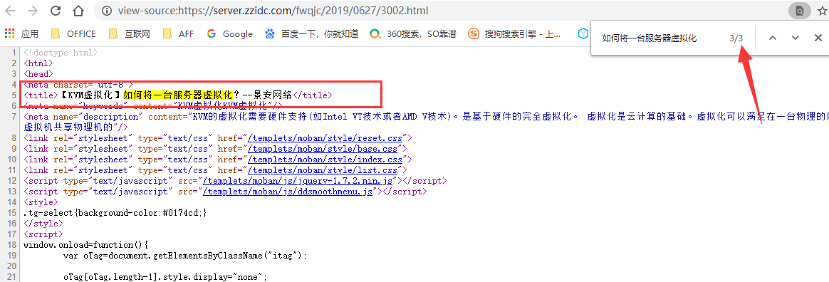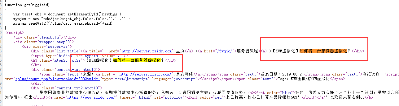 在文章页面源代码里我们搜索内容前面几个字,发现有两个位置,一个是顶部的页面描述,一个是真正的正文开始位置。当然用下面这个啦