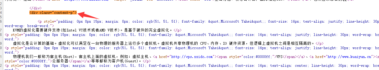 我们选择<div class=”content-p”>最为采集起始位置,这个正好也是实际正文内容的起始位置,并且在源码里搜索不到第二处!