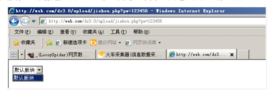 然后我们在浏览器里试试能不能访问,访问地址是http://网站域名/jiekou.php?pw=密码,这个密码就是上面说的接口密码: