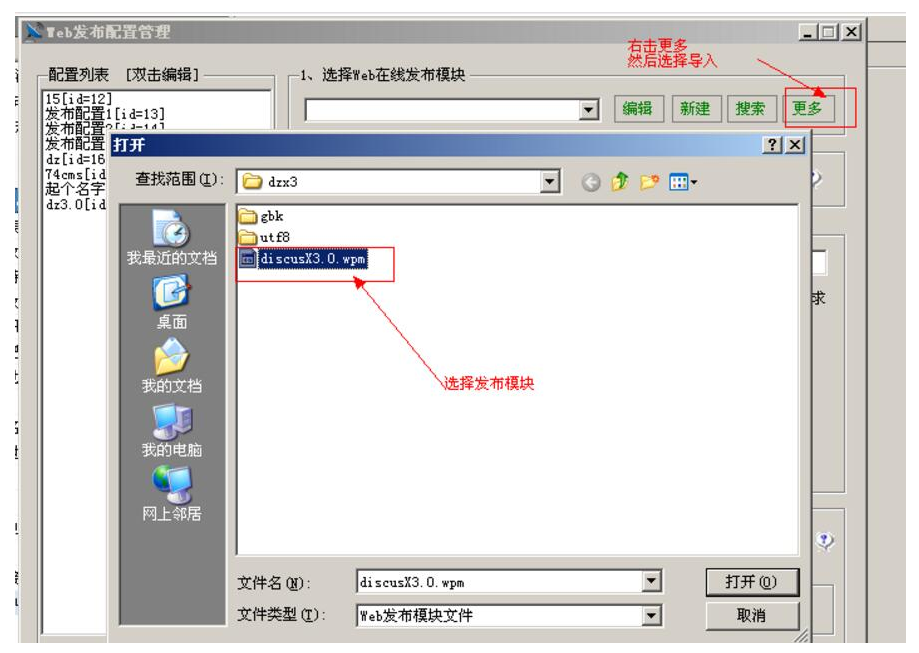 第一步,选择我们刚才导入的dz发布模块。