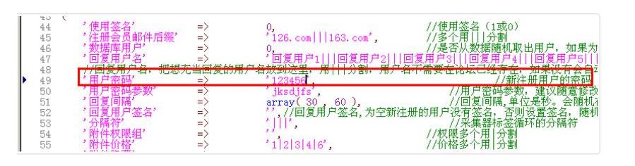 如果留空的话,新注册的用户名密码就是:把用户名和密码参数连接起来,md5下,取后面的12位,上图用户密码下面就是用户名密码参数,是可以设置的。