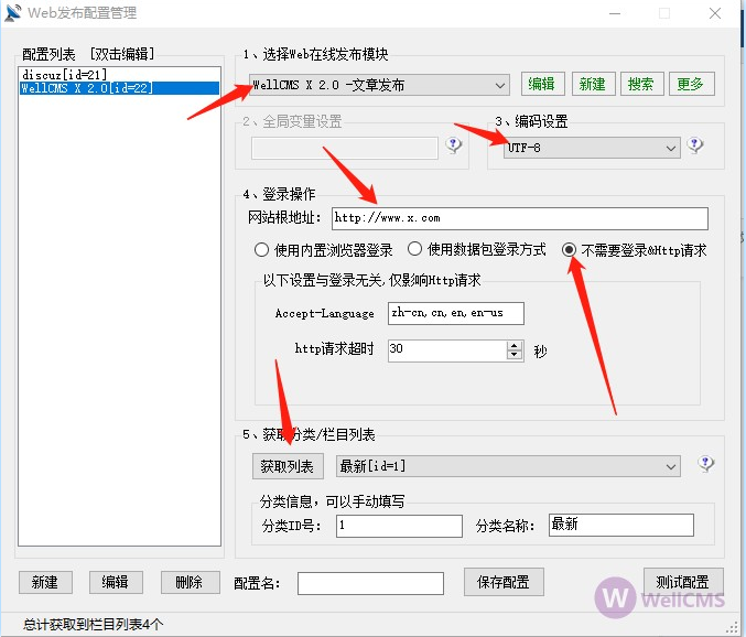 wellcms 2.0 内置了免登陆入库接口,此接口可以同时接收多台电脑同时POST,前提是服务器资源充足,如CPU、内存、MYSQL参数设置、当前站点并发数、以及各项服务器参数的设置等等。入库接口只负责接收处理数据,并本地化图片,除了服务器资源还会受限于客户端网速、服务端网速、目标站网速的限制。